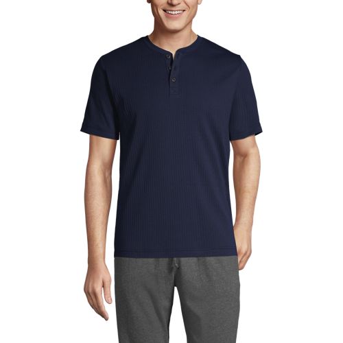 Men S Knit Rib Short Sleeve Henley Pajama Shirt Lands End