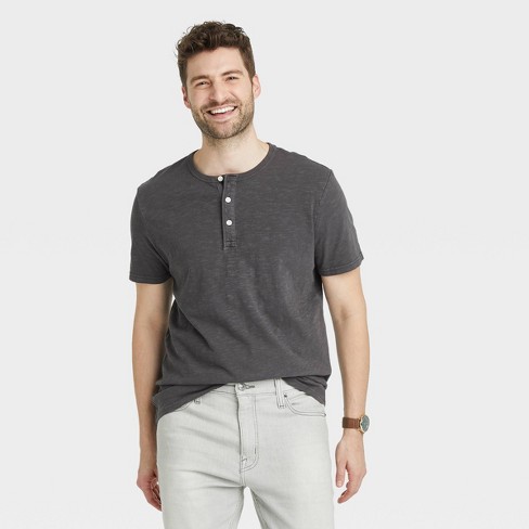 Men S Short Sleeve Henley Shirt Goodfellow Co Railroad Gray Xxl Target